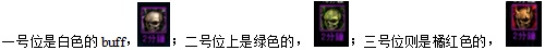 每个buff会持续三分钟(普通本是四分钟)。如果buff的倒计时结束,而没有将buff切换掉,则立即躺地板。pc祭品获得此buff后,会持续损失hp。